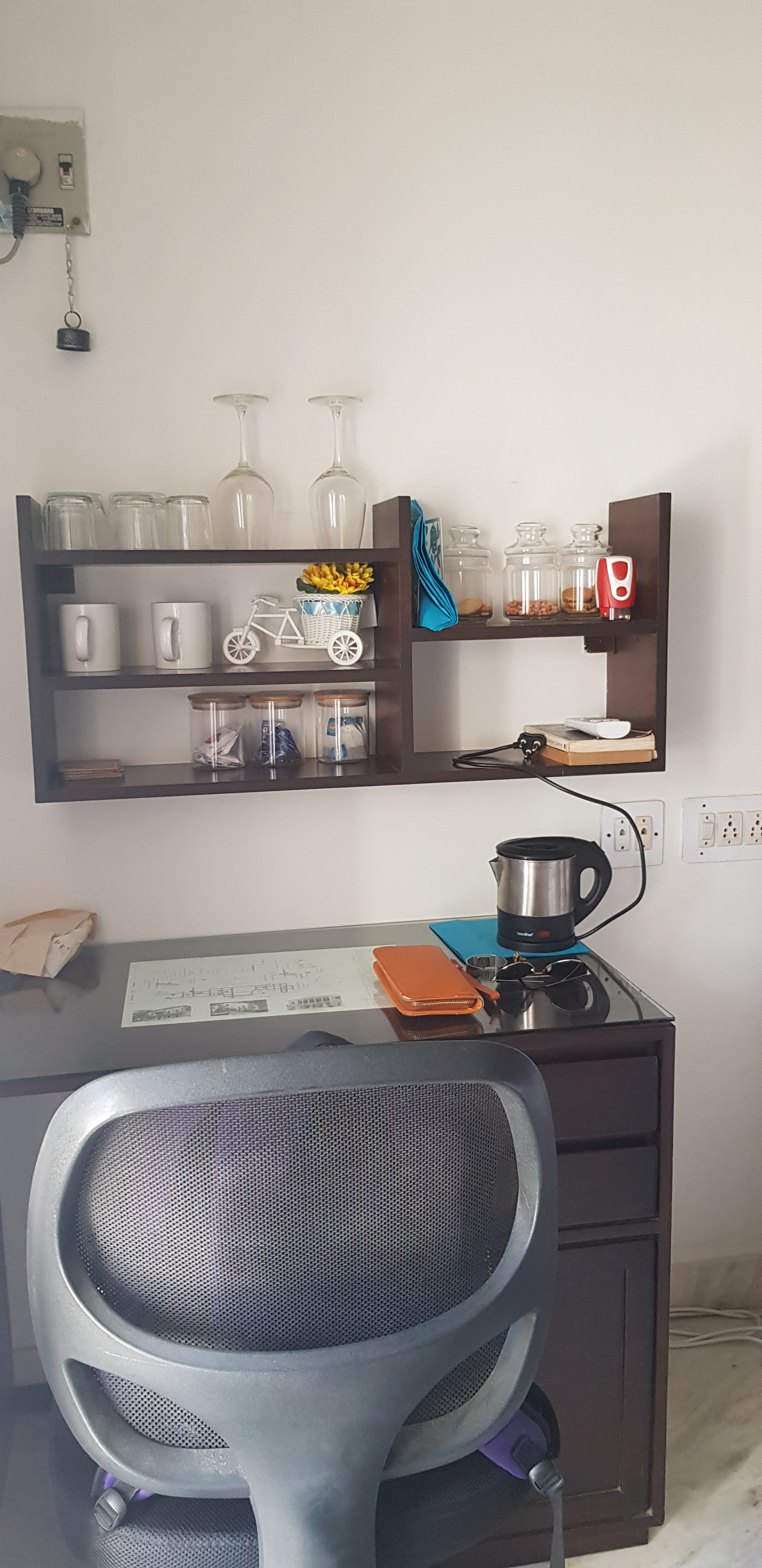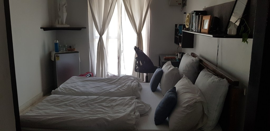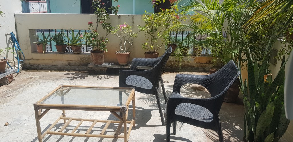Suranjika’s place was tucked at the far end of a quiet street, giving the place a respite from the main road’s hustle-bustle. The place was clean and received plenty of sunlight. The AC room had all the essentials – electric kettle, glasses, cups, tea bags, dairy whitener, biscuits, cutlery, napkins, bottle opener and a fridge with water and ice. The bathroom had sanitizer, tissue papers, shampoo, shower gel and a hair dryer. The cupboard in the room was pretty huge and could easily accommodate 3 normal suitcases worth clothes. It had got few hangers as well. The patio was airy and old school, making it a delight to bask in during wee hours. At about 6.30am, I found the breeze cool (this is April, mind you), with birds chirping and the friendly dog across the road peeping from the terrace railing gaps.