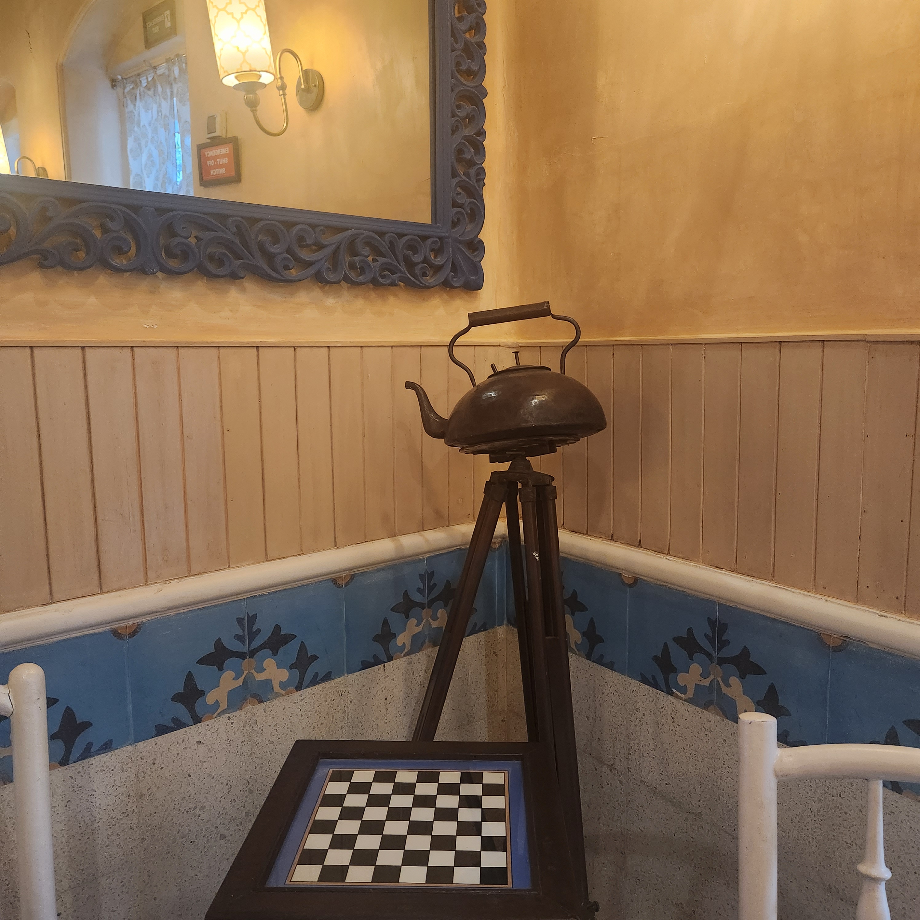 Nestled in the heart of the bustling city, Taj Mahal Tea House offers an escape with its quaint and warm interiors that transports one to a serene world. As I stepped inside the courtyard leading to the indoor seating, wooden tables and cane chairs welcomed me. Once inside, the sight of vintage teapots on rustic shelves, chessboards from a bygone era, gilded mirrors and lace curtains allowing thin rays instantly soothed my senses.