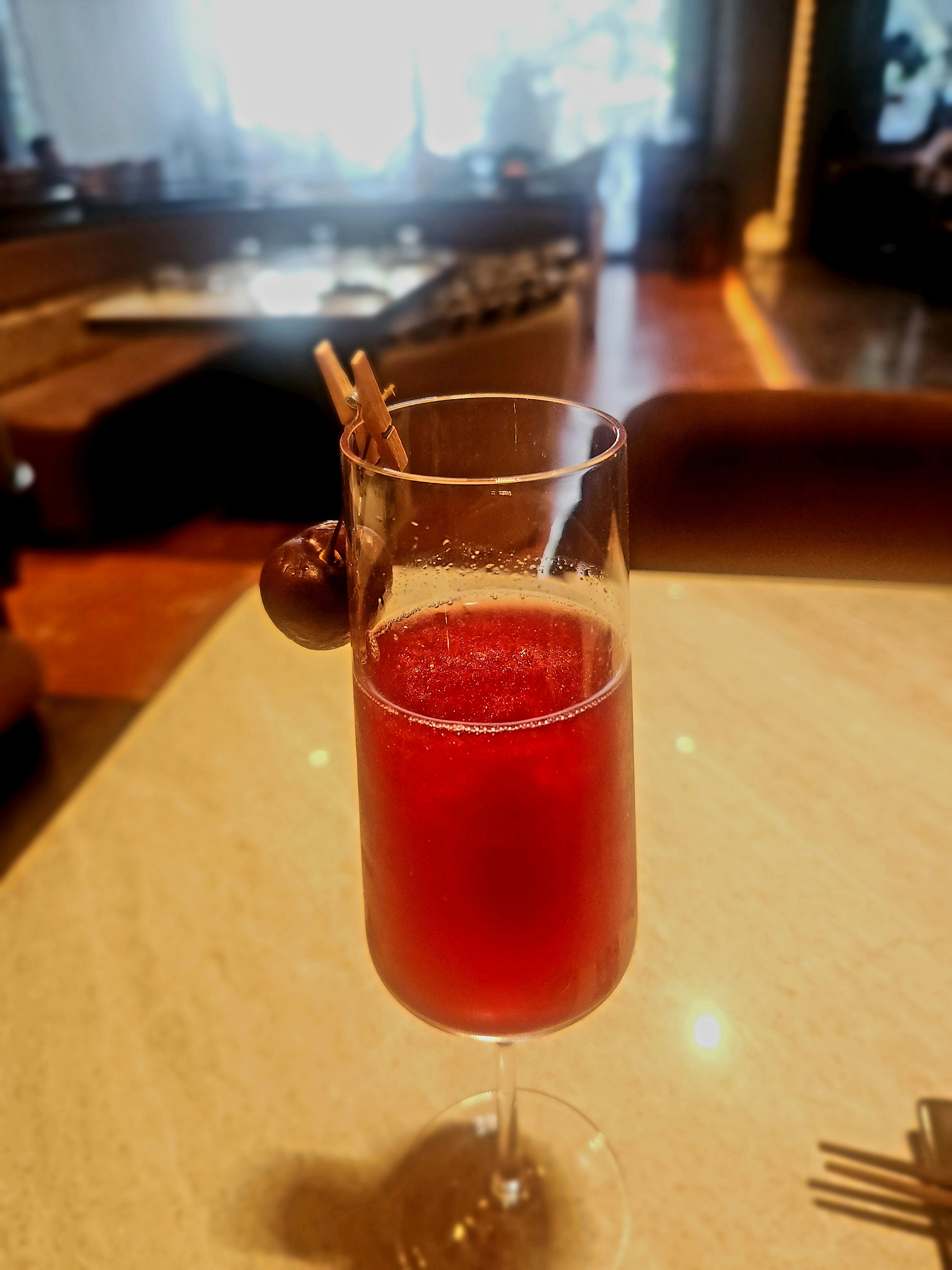 If I wasn’t too obsessed with the Idea of ‘Sakura’ (Cherry Blossom), I would have given its namesake drink, a pass. I, however, couldn’t push the temptation away. So, Sakuraaaaa was ordered and it brought all the pink hues with it. Sparkling wine, gin, cranberry, cherry, gold dust. Love, in other words.